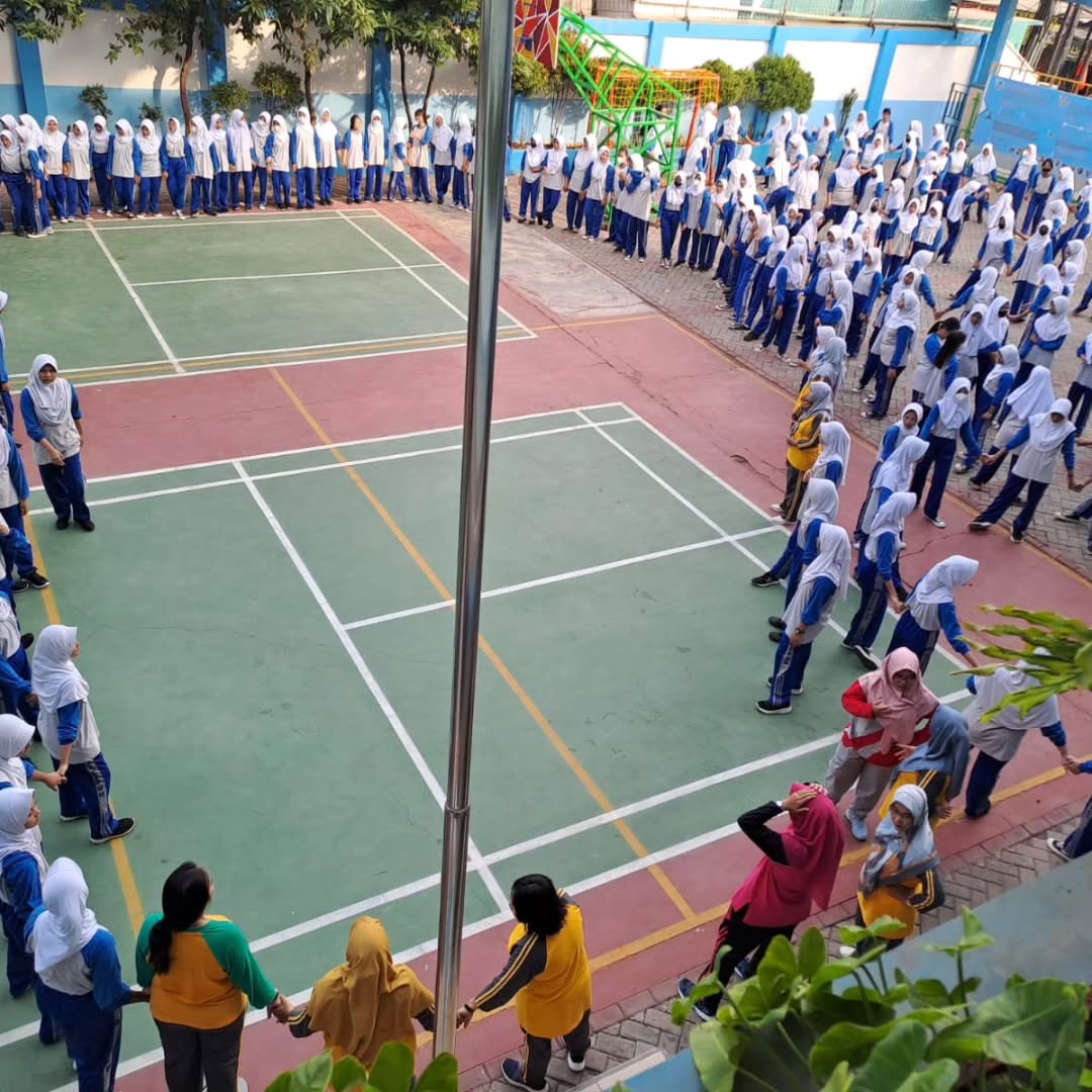 Kegiatan senam bersama di lapangan sekolah